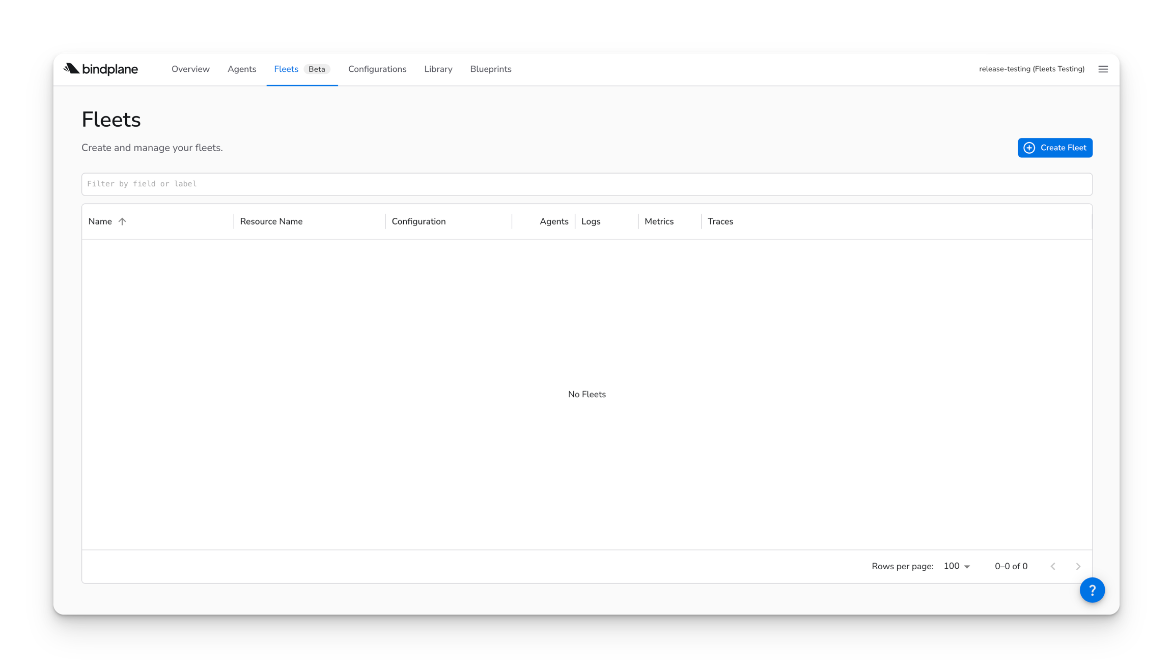 Defines the matching rule for agents. In this example, agents with the label fleet=lauras-test-fleet will automatically be associated with this Fleet.