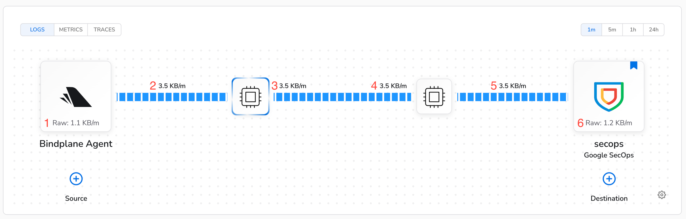 Currently, only Google SecOps destinations support raw log measurements. For more information, or to discuss adding support to a specific destination, please contact us.